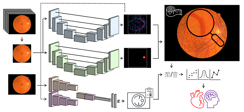 R. A. Welikala, J. Fajtl, G. Johnson, F. Rahman, R. Podoleanu, P. Remagnino, E. E. Freeman, R. Chambers, L. Bolter, J. Anderson, A. Olvera-Barrios, A. Warwick, P. J. Foster, R. Shakespeare, R. Ganguly, C. Egan, A. Tufail, C. G. Owen, A. R. Rudnicka, and S. A. Barman, ‘Artificial intelligence-enabled retinal vasculometry at scale utilizing the UK Biobank, CLSA, and NEL DESP datasets’, in 2024 IEEE EMBS International Conference on Biomedical and Health Informatics (BHI), IEEE, 2024, pp. 1–8.